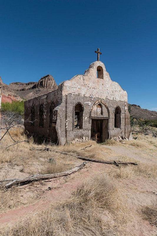 Abandoned movie set along the Rio Grande River in Big Bend Ranch State Park in lower Brewster County White Modern Wood Framed Art Print with Double Matting by Highmith, Carol