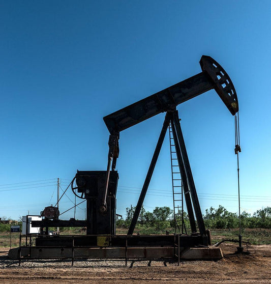 A pumpjack in Wichita County, TX White Modern Wood Framed Art Print with Double Matting by Highmith, Carol
