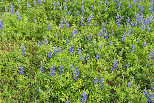 Bluebonnets at the Lady Bird Johnson Wildflower Center, near Austin, TX White Modern Wood Framed Art Print with Double Matting by Highmith, Carol