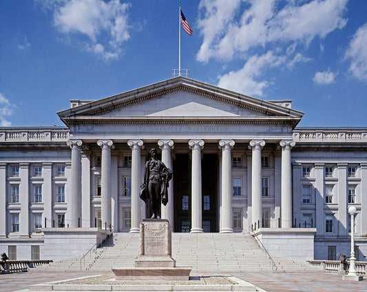 U.S. Treasury building, Washington, D.C. White Modern Wood Framed Art Print with Double Matting by Highmith, Carol