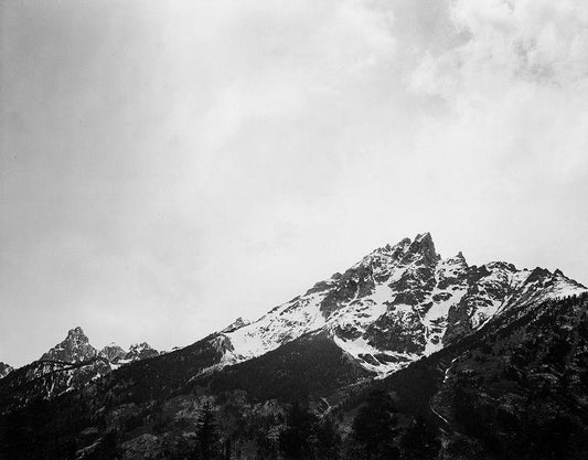 Snow covered peak in Grand Teton National Park, Wyoming, 1941 White Modern Wood Framed Art Print with Double Matting by Adams, Ansel