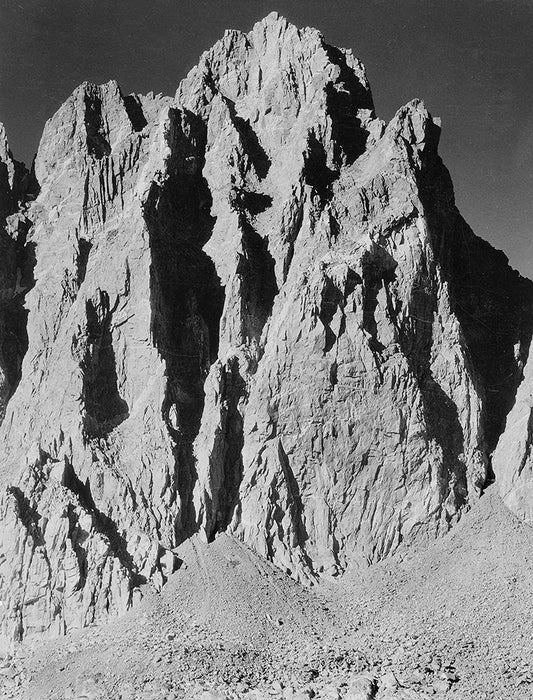Peak above Woody Lake, Kings River Canyon, proposed as a national park, California, 1936 White Modern Wood Framed Art Print with Double Matting by Adams, Ansel