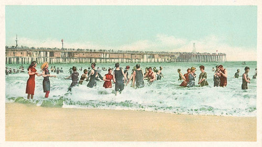 Surf Bathing, Long Beach, Calif., 1898 White Modern Wood Framed Art Print with Double Matting by Detroit Publishing Co.