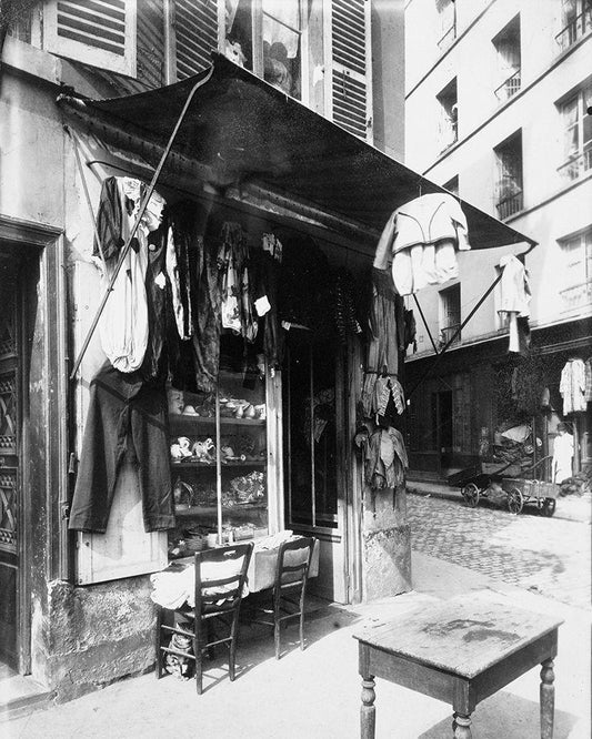 Paris, 1911 - Costume Shop, rue de la Corderie White Modern Wood Framed Art Print with Double Matting by Atget, Eugene