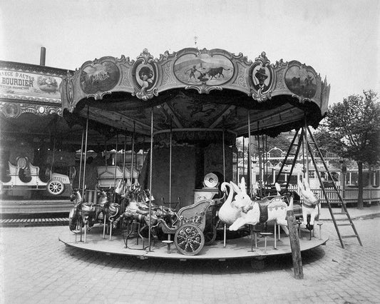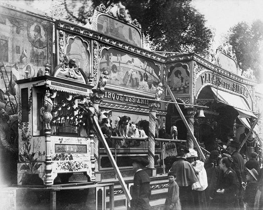 Paris, 1898 - Animal Circus, Fete des Invalides White Modern Wood Framed Art Print with Double Matting by Atget, Eugene