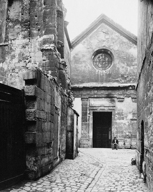 Paris, 1898 - The Facade of Saint Julien le Pauvre White Modern Wood Framed Art Print with Double Matting by Atget, Eugene