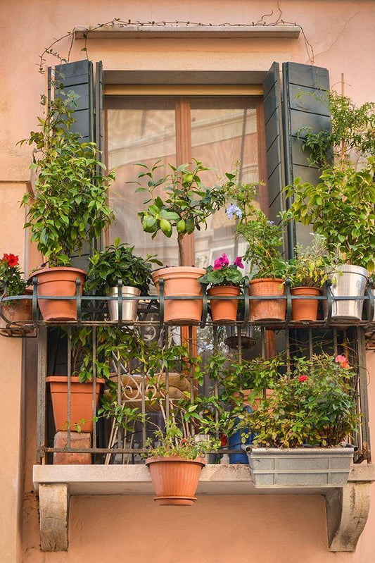 Italian Window Flowers III White Modern Wood Framed Art Print with Double Matting by DeNardo, Laura