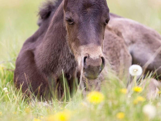 Foal in the Field I White Modern Wood Framed Art Print with Double Matting by Sturgeon, Ozana