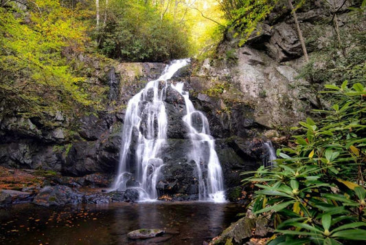 Spruce Flat Falls at Morning White Modern Wood Framed Art Print with Double Matting by Head, Danny