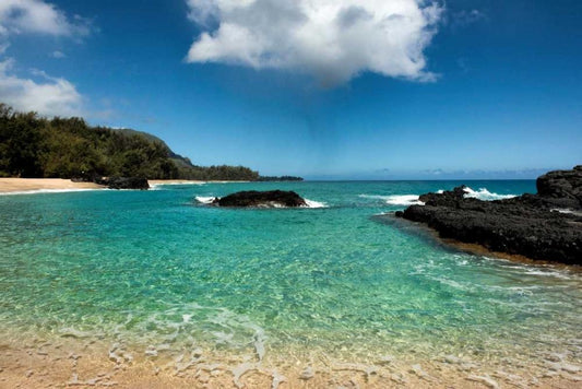 Lumahai Beach White Modern Wood Framed Art Print with Double Matting by Head, Danny