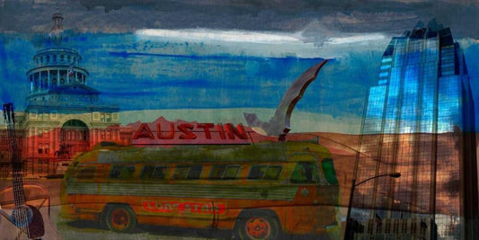 Austin Bus White Modern Wood Framed Art Print with Double Matting by Jasper, Sisa