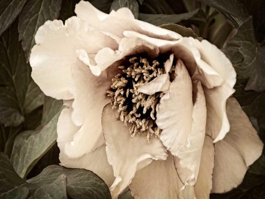 Golden Era Peony IV White Modern Wood Framed Art Print with Double Matting by Perry, Rachel