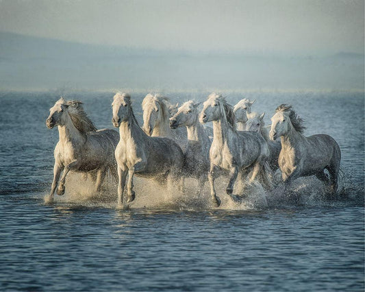 Water Horses I White Modern Wood Framed Art Print with Double Matting by PHBurchett