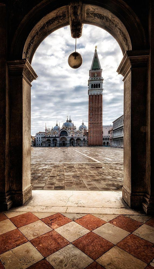 Rialto Panorama White Modern Wood Framed Art Print with Double Matting by Head, Danny