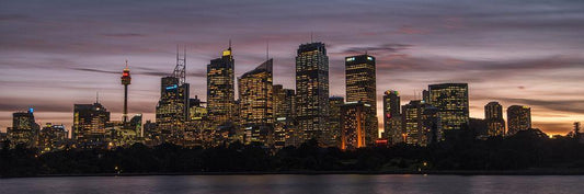 Sydney Skyline White Modern Wood Framed Art Print with Double Matting by Head, Danny