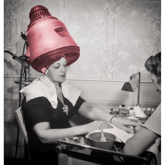 Pink Hair Dryer Gold Ornate Wood Framed Art Print with Double Matting by Vintage Apple Collection
