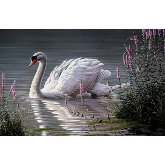 Summer Idyll - Mute Swan Gold Ornate Wood Framed Art Print with Double Matting by Goebel, Wilhelm