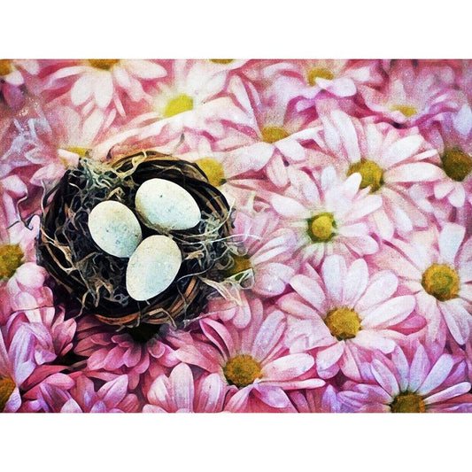 Nested On Daisies Gold Ornate Wood Framed Art Print with Double Matting by Aldridge, Ashley