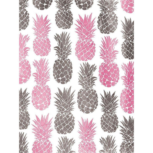 Pink Grey Pineapples Gold Ornate Wood Framed Art Print with Double Matting by OnRei
