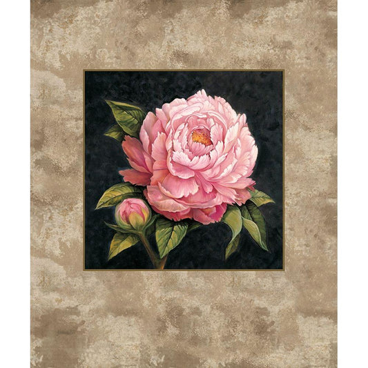 Pink Peony Gold Ornate Wood Framed Art Print with Double Matting by Lopez, E.