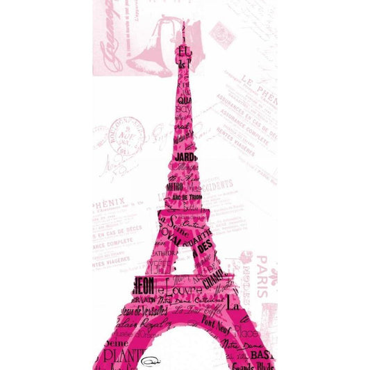 Pink Eiffel Gold Ornate Wood Framed Art Print with Double Matting by OnRei