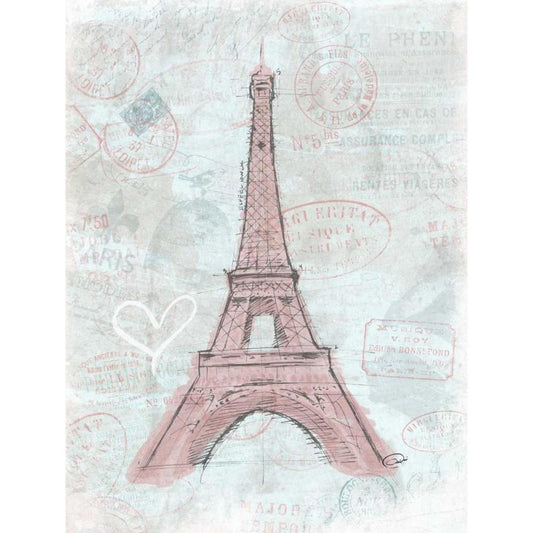 Eiffel Sketch Romantic Gold Ornate Wood Framed Art Print with Double Matting by OnRei