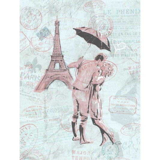 Romantic love Eiffel Gold Ornate Wood Framed Art Print with Double Matting by OnRei