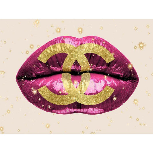 Luxury Lips Pink Gold Ornate Wood Framed Art Print with Double Matting by Blake, Madeline