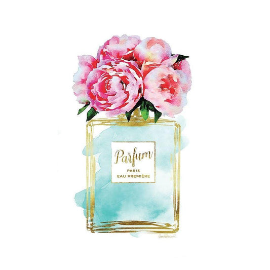 Parfume Teal with Peony Gold Ornate Wood Framed Art Print with Double Matting by Greenwood, Amanda