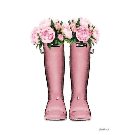 Pink Rain Boots with Peony Gold Ornate Wood Framed Art Print with Double Matting by Greenwood, Amanda
