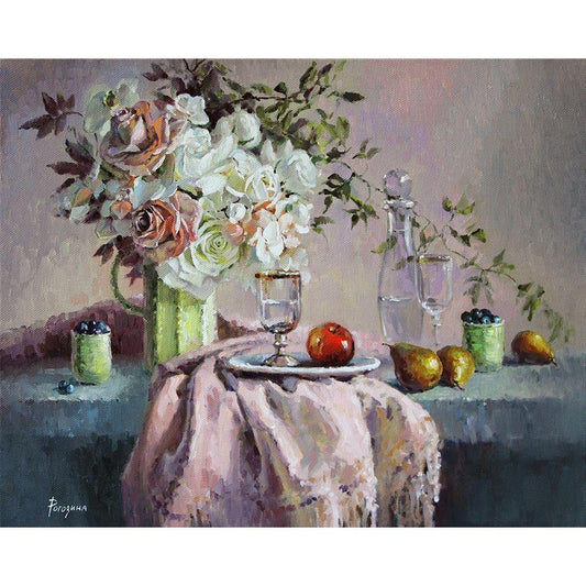 Flowers and Glasses Gold Ornate Wood Framed Art Print with Double Matting by Rogozina, Svetlana