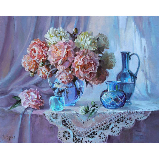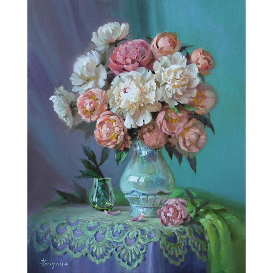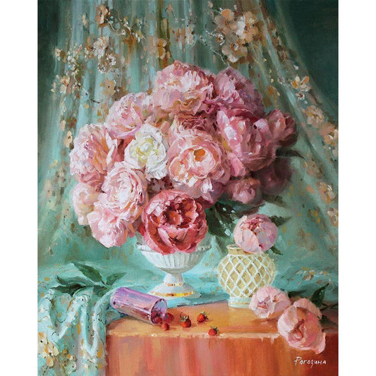 Still Life with Peonies Gold Ornate Wood Framed Art Print with Double Matting by Rogozina, Svetlana