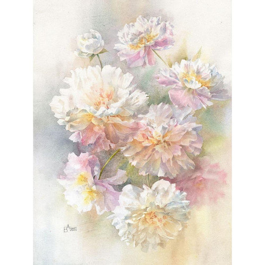 Aerial Peonies Gold Ornate Wood Framed Art Print with Double Matting by Besedina, Anastasiia
