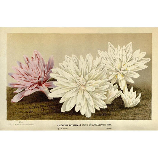 Colchicum Autumnale Gold Ornate Wood Framed Art Print with Double Matting by Van Houtteano. Horto