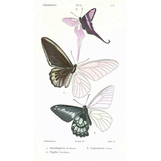 Butterflies, Plate 17 Gold Ornate Wood Framed Art Print with Double Matting by Blanchard, Emile