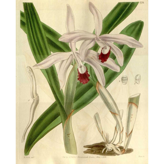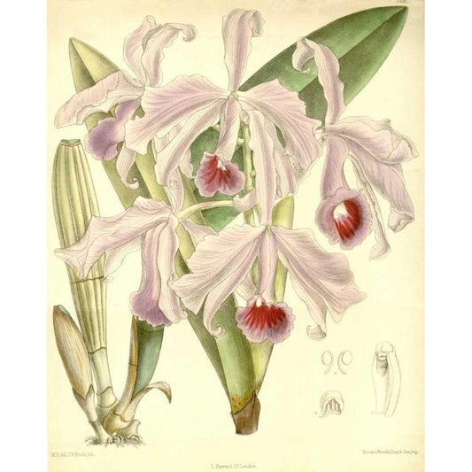 Orchid, Cattleya Intermedia Gold Ornate Wood Framed Art Print with Double Matting by Curtis, William