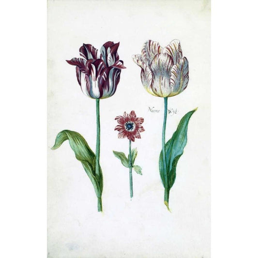 Tulips Gold Ornate Wood Framed Art Print with Double Matting by De Bray, Dirck