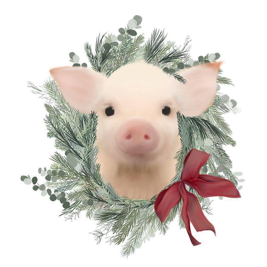 Pig Wreath Gold Ornate Wood Framed Art Print with Double Matting by Straatsma, Leah