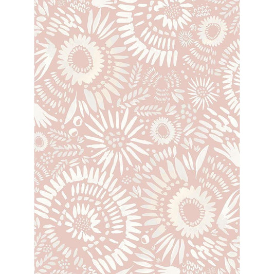 Line Wild Flowers Pink Gold Ornate Wood Framed Art Print with Double Matting by Straatsma, Leah