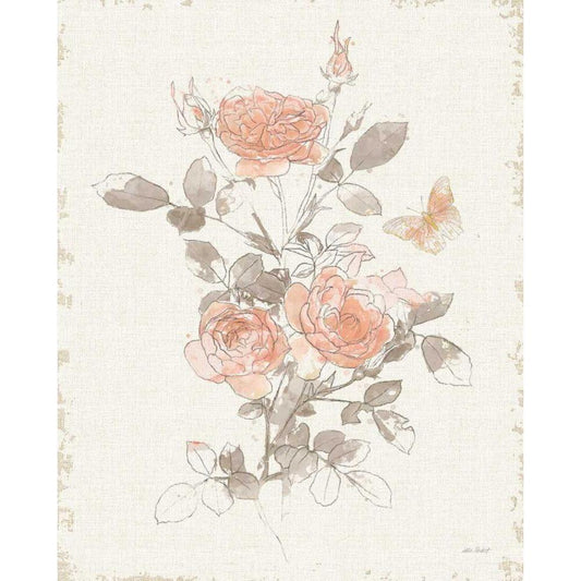 Red Flowers on Cream Crop Gold Ornate Wood Framed Art Print with Double Matting by Vassileva, Silvia