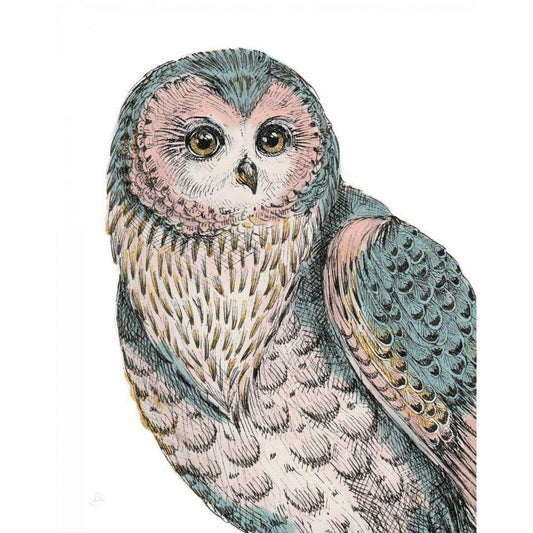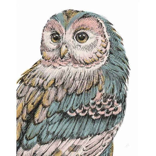 Beautiful Owls IV Pastel Gold Ornate Wood Framed Art Print with Double Matting by Brissonnet, Daphne