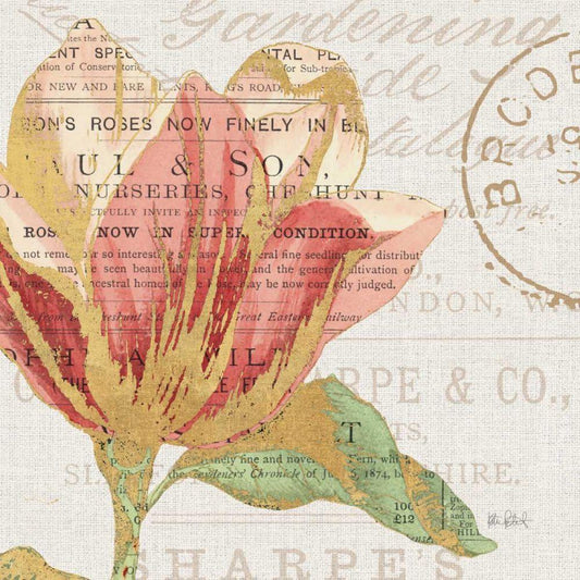 Magenta and Coral Floral Gold Ornate Wood Framed Art Print with Double Matting by Vassileva, Silvia