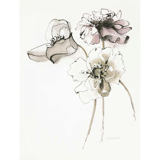 Three Somniferums Poppies Neutral Gold Ornate Wood Framed Art Print with Double Matting by Novak, Shirley