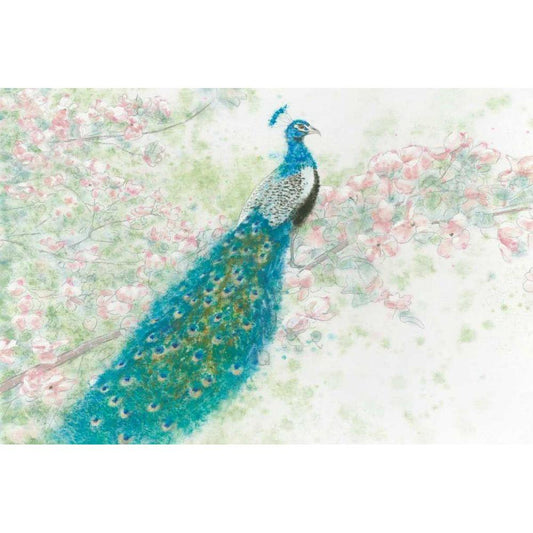 Spring Peacock I Pink Flowers Gold Ornate Wood Framed Art Print with Double Matting by Wiens, James