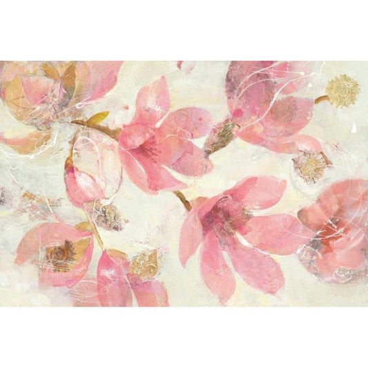 Magnolias in Bloom on White Gold Ornate Wood Framed Art Print with Double Matting by Hristova, Albena