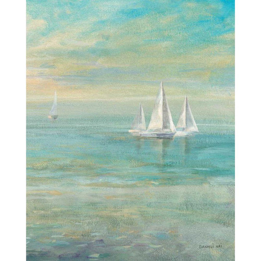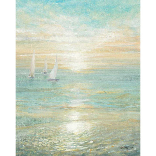 Sunrise Sailboats I Gold Ornate Wood Framed Art Print with Double Matting by Nai, Danhui