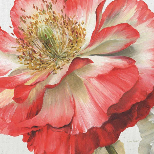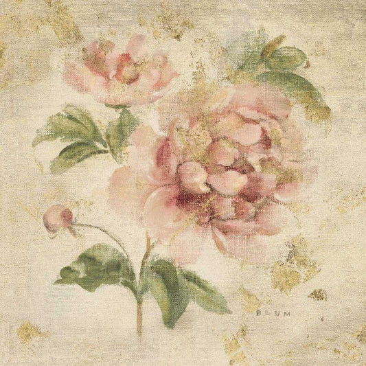 Coral Rose on Antique Linen Light Gold Gold Ornate Wood Framed Art Print with Double Matting by Blum, Cheri
