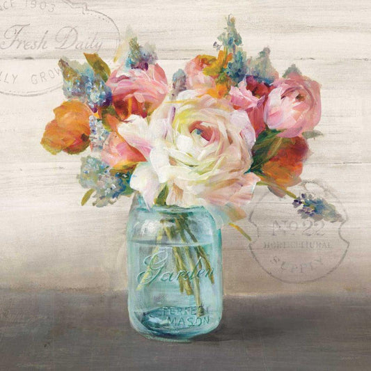 French Cottage Bouquet I Gold Ornate Wood Framed Art Print with Double Matting by Nai, Danhui
