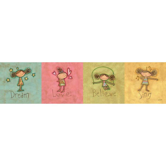 Dream Love Believe and Sing Panel Gold Ornate Wood Framed Art Print with Double Matting by Tavoletti, Anne