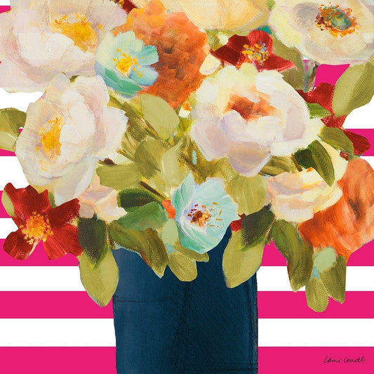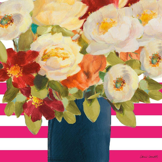 Flowers on Pink Stripes I Gold Ornate Wood Framed Art Print with Double Matting by Loreth, Lanie